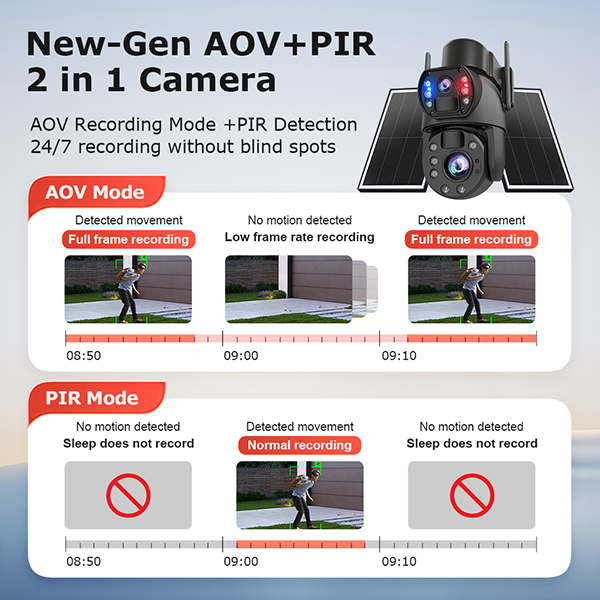 •Motion detection combined with dual PIR infrared sensors for more accurate activity triggering, suitable for various scenarios